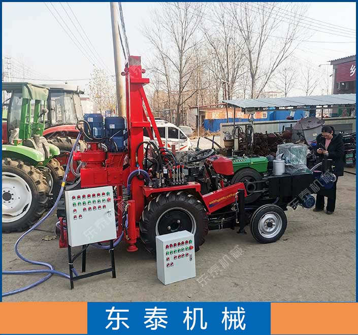安徽拖拉机带小型小口径打井打桩机设备河南省东泰机械是生产打井机、洗井机、开沟机、树坑机、封沟机的厂家,生产的打井机有正循环、反循环、正反循环三种类型,正反循环打桩机可以安装拖拉机上面、也可以安装在履带上、农用三轮车上、或者做成牵引式的,正反循环钻井机钻井可以适应多种不同的地质情况,反循环适用于粘泥层的效果更好,反循环的话可以让粘泥层直接从井内反抽上来,粘泥不容易护着刀头。