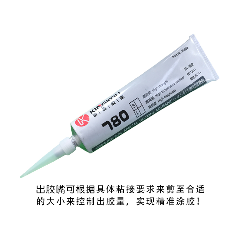 景固KINGKOU K-780硅胶专用粘合剂具有突出的耐高、低温性和耐老化性,优异的电器绝缘性和防潮抗震性,其优异的粘接性表现在能广泛粘合硅胶与金属、非金属、塑料、木材、绒布、玻璃等材质,固化后的胶层呈软质透明状态,可耐240度以上高温,具有优异的耐高温和耐热水性能。