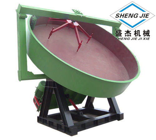 圆球造粒机盘角采用整体圆弧结构,成粒率可以达93%以上。造粒盘设有出料口,便于间断生产作业,大大降低了劳动强度,提高了劳动效率。减速机与电动机采用链条传动,起动平稳,减缓冲击力,提高设备使用寿命。造粒盘盘底采用多条辐射钢板加强,坚固耐用,。加厚、加重、坚固的底座设计,不需地脚螺栓固定,运转平稳。造粒机主齿轮采用高频淬火,使用寿命增加1倍。造粒面盘内衬高强度钢,防腐耐用。