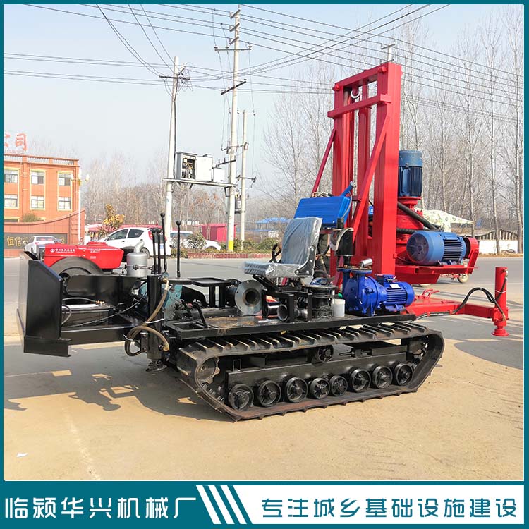 华兴链轨式4寸正反循环打井机 河南打井机厂家 5寸反循环钻机河南省漯河市临颍县华兴机械制造有限公司是生产打井机的专业厂家,主要生产农田灌溉打井机、家用型水井钻机、干式出泥钻机和汽车钻的专业生产厂家,并生产建筑工程、桥梁桩孔等打桩机。产品结构合理、操作移动方便、造型美观、造价适中。打井机深度几十米至几百米,含带多个档位和自动卸杆装置,效率高,使用方便,质量可靠,是您打井设备的理想选择。该款动力头式打井机,牵引方式运输,采用液压形式,伸缩型架子,缩小产品架子,方便运输,在使用过程中,大大提升了打井的速度,采用7.5KW的电机,可以根据客户的要求定做调速功能。现临颍东泰机械制造有限公司,主要生产水井钻机。生产的该款车载式水井钻机采用正循环原理,解决沙层比较大利用反循环容易塌方的问题。