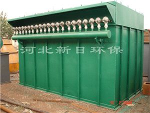 含尘气体由中间进风道经分配进入各过滤单元的灰斗,粗尘粒在惯性和重力的作用下直接落入灰斗,细尘粒随气流转折向上进入过滤室,在滤袋表面尘饼的过滤作用下,粉尘积附在滤袋外表面,过滤后的气体由滤袋内侧进入上箱体,并汇聚到净气集合管排风道,经系统风机排放到大气。