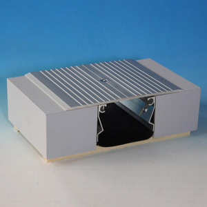 金属盖板型地面变形缝装置采用滑杆确保变形缝装置变位时仍能保持中心及原有位置。适用于50~500mm缝宽。