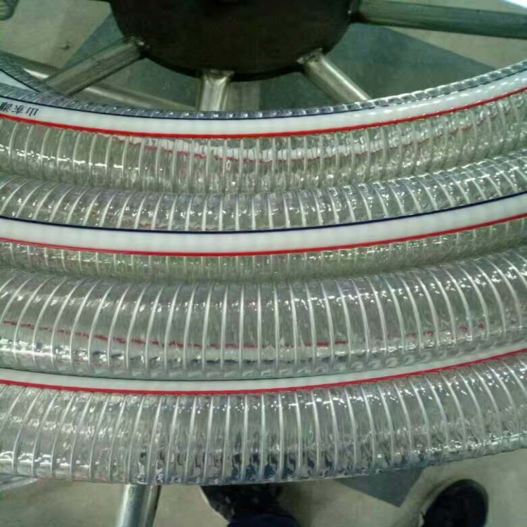 PVC钢丝螺旋增强软管为内嵌螺旋钢丝骨架的PVC透明软管。