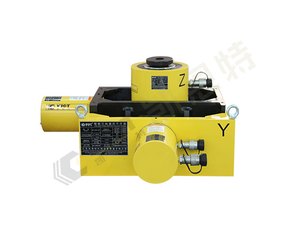 三维调整液压千斤顶是集液压技术、机械技术、计算机控制技术、电气技术于一体。通过PLC控制对物体需要调整的状态转化为计算机程序,然后发送到液压泵并对其进行控制,液压泵再将指令传给多台三维调整千斤顶以实现联动同步工作。同时传感器将实际工作状况反馈到PLC控制器,计算机将对信息进行计算后再发出调整信号。