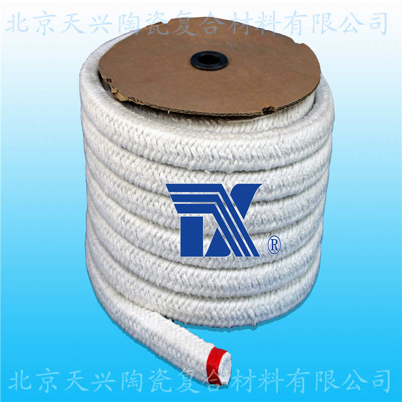 用陶瓷纤维纱线编的方形绳状耐高温产品。