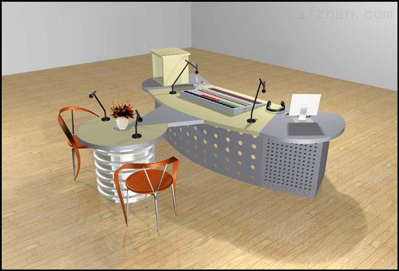 5.播音台,播音桌,设计依据人体学原理,能大限度降低疲劳,使人感觉舒适美观;