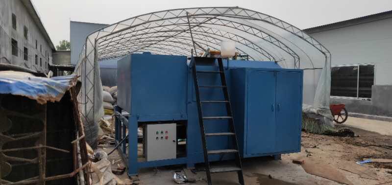 畜禽粪便等有机污染物经木粉、玉米秸秆粉、花生壳粉等辅料预混调节后,菌种投加到发酵罐体里,在搅拌、供氧的条件下发生好氧发酵,产生发酵热能。此热能加速好氧发酵,又能蒸发污染物自带的水分,在一定的温度条件下可以杀灭有害细菌、虫卵、杂草种子等,生产出优质的有机肥原料。