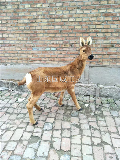 狍是一种中小型鹿类,体长0.95-1.35米,肩高0.67-0.78米,尾长仅2-3厘米,体重15-30千克;角短,长仅23厘米左右,角干直,基部粗糙有皱纹,分枝不多于3杈; [4] 雄性略大。鼻吻裸出无毛,眼大,有眶下腺,耳短宽而圆,内外均被毛。颈和四肢都较长,后肢略长于前肢,蹄狭长,有敖腺,尾很短,隐于体毛内。仿真狍子模型是根据实际狍子比例根据客户要求来定做的专业模型,本产品应用于影视拍摄仿真狍子道具,博物馆专业展览仿真模型,园林景区实物比例仿真狍子模型等。仿真狍子模型产品的内胎雏形全部采用人工分刻技术,由专业美工大师雕刻模具,形态归真比例协调,引进德国一体注塑科技机台,保证狍子雏形没有接痕。仿真狍子模型外部皮毛采用优质山羊皮安全熟制加工,去头皮,使皮革安全柔软又不失毛峰的油亮光滑。山东国威工艺成立于1980,是一家致力于开发生产仿真狍子模型的厂家,欢迎新老顾客来图定制,祝大家财源亨通。