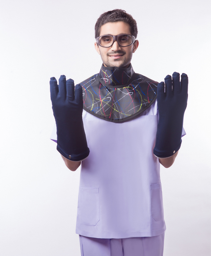 在进行放射性诊疗检查时,要检查X射线防护服附属部件是否齐全,是否符合自己所需的铅当量,然后再进行操作。
