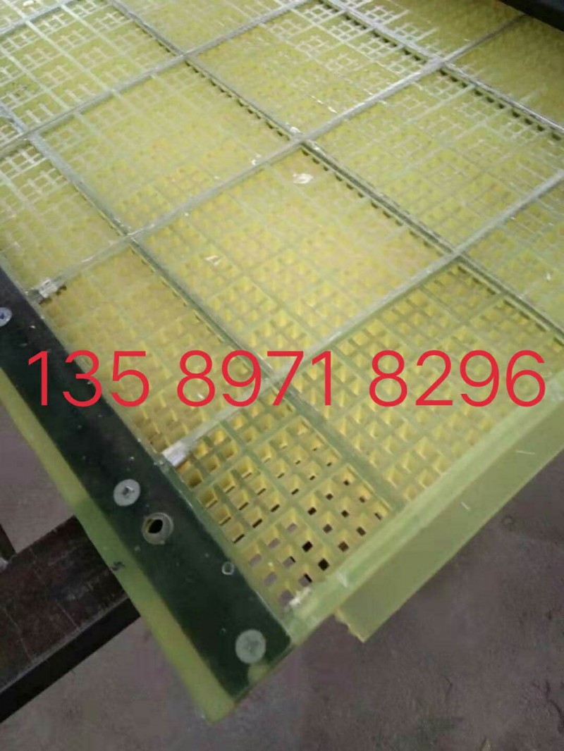 3、适用范围广,专业适用性更强,适用任何型号的振动筛机并可量机制作。聚氨酯筛板专业应用于水电站、建材及其它金属选矿业。0.1mm—170mm范围内各种物料的筛分,无论干筛、湿筛都毫不影响筛分效率。对0.5m—3mm范围内的脱水、脱介筛、更加充分地显示了聚氨酯筛面的优越性。产品耐水、耐腐蚀、耐老化,更换维护方便。聚氨酯密度小( 1.32kg/ m 3 ),重量轻于金属筛面,能降低生产单耗,因此能适应筛机大型化发展要求。