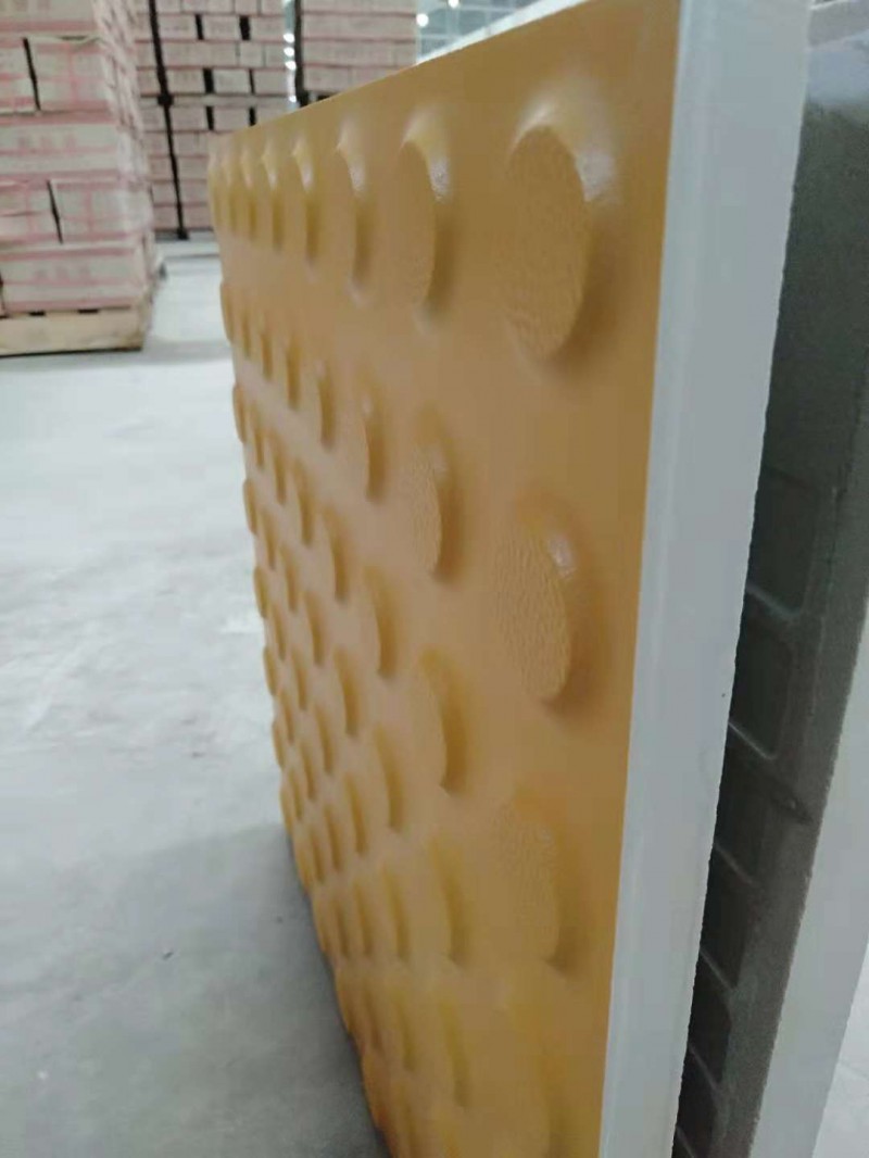 全瓷盲道砖是以天然矿物质石英、长石、粘土为主要原料按照严格的配比经过磨粉、加湿、烘干物力挤压成型的一种全瓷耐磨、抗腐蚀产品。