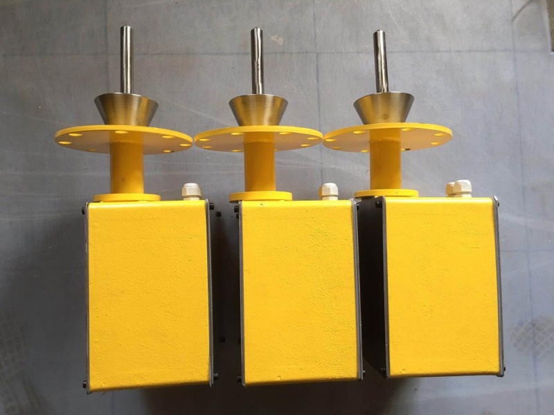 重锤式料位计安装在料仓顶部,料位计传感器的探测过程由控制显示器发出的信号控制。重锤式料位计的机械传动部分由可逆电机、丝杆、齿轮轴、绕线筒、灵敏杠杆等组成。
