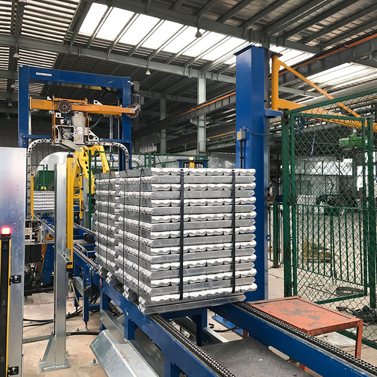该型号打捆机是针对有色行业锭垛钢带打捆而设计的,具备穿箭及设备可平移功能,满足工况需要。