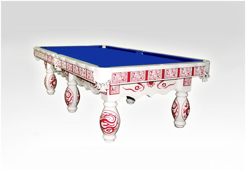 - 产品说明:中式台球排名赛决赛专用台。龙行天下,巅峰视界。睥睨成就,平安一生。灵感源自于陶瓷艺术,白色烤漆设计,优雅时尚。