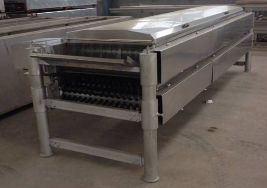 是肉鸡、鸭、鹅进行脱毛工作的另一主要设备,为卧式转辊结构,采用链条传动,使上下两排脱毛辊实现相对转动,从而脱去禽体上的毛。上下两排脱毛辊的间距可以调整,以适应不同鸡鸭的需要。
