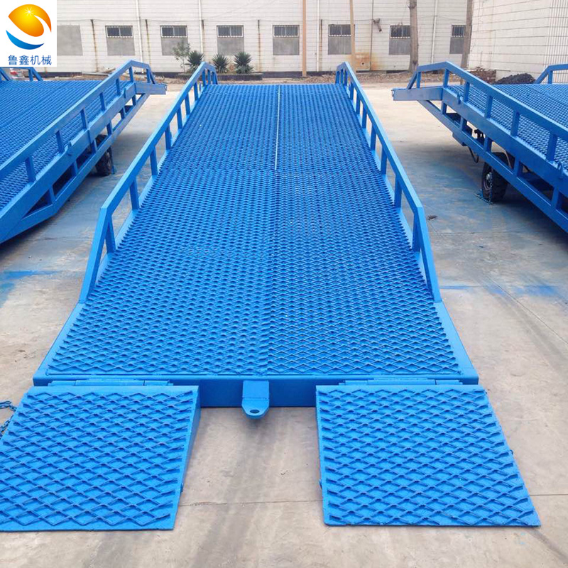 移动式登车桥的主要作用是,在地平面与车厢之间搭起一座桥,有了它,叉车能直接从地面携带货物驶入汽车车厢内部,进行批量装卸作业。使用时,前板架在货车车厢上,起到承载重量的作用,减少了货物重量对液压登车桥的压力,保证了液压登车桥的使用寿命,从而达到长期使用的目的。