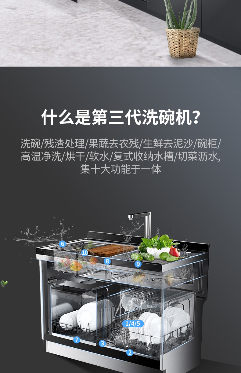 产品介绍:水槽洗碗机是一种兼备水槽、洗碗以及果蔬净化等多重功能的水槽形洗碗机,同时适用于清洗蔬菜、水果、碗碟等,可有效去除农残。