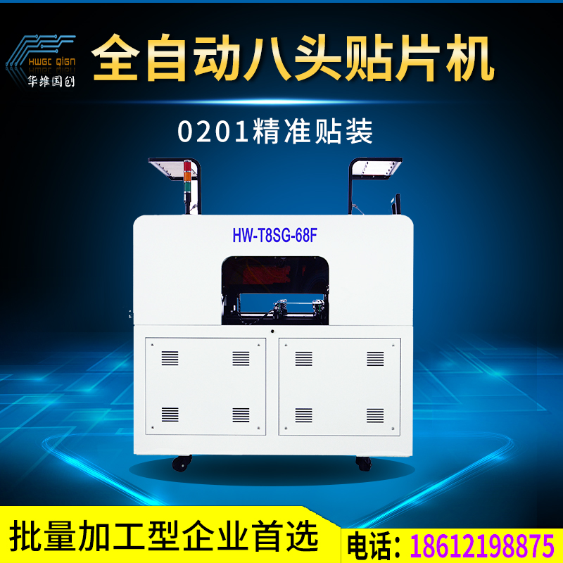 八组高速贴装头,三段式进板轨道,十部视觉相机,68或80位料站可选,PCB最大宽度450mm,