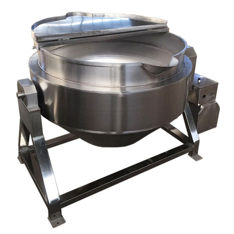 以液化气、天然气为热源,价格低廉,操作方便,具有受热快,热效率高。提高制品质量、缩短工作时间、改善劳动条件的优良食品设备。本产品凡接触食品部分皆为06Cr19Ni10不锈钢制造,符合《中华人民共和国食品卫生法》的要求,具有造型美观、设计合理、结构紧凑、安装方便、操作简单、便于维修。结构:立式夹层锅主要由锅体、立式支腿、搅拌系统、加热系统、传动装置、搅拌轴、锅体翻转系统和疏水系统等组成。