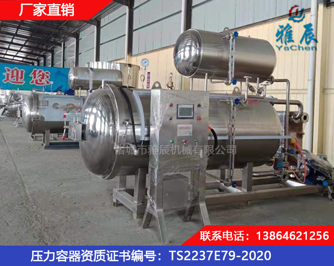 诸城市雅辰机械有限公司具有压力容器(证书编号:TS2237E79-2020)制造资质,主要生产制造各种杀菌锅、夹层锅、蒸煮锅、卤锅、行星搅拌炒锅、松香锅、搅拌罐、食用菌灭菌设备、硫化罐等各种不锈钢成套加工设备等,是食品加工设备专业制造商。产品设备销往全国多个省市、自治区及出口东南亚、中亚等多个国家。杀菌锅种类有电加热杀菌锅、蒸汽杀菌锅、电汽两用杀菌锅、卧式、立式、双层杀菌锅、双锅并联杀菌锅、多锅串联等一百多品种。