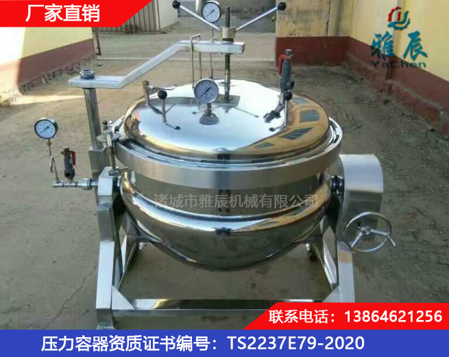 诸城市雅辰机械有限公司具有压力容器(证书编号:TS2237E79-2020)制造资质,主要生产制造各种夹层锅、蒸煮锅、杀菌锅、卤锅、行星搅拌炒锅、松香锅、搅拌罐、食用菌灭菌设备、硫化罐等各种不锈钢成套加工设备等,是食品加工设备专业制造商。产品设备销往全国多个省市、自治区及出口东南亚、中亚等多个国家。雅辰夹层锅品种有电加热夹层锅、蒸汽加热夹层锅、燃气夹层锅、电磁加热夹层锅、带搅拌夹层锅、立式夹层锅、可倾斜式夹层锅等类型。