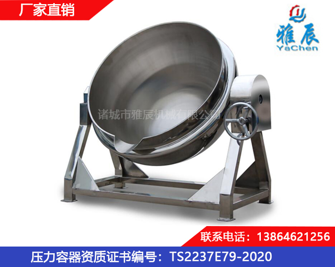 诸城市雅辰机械有限公司具有压力容器(证书编号:TS2237E79-2020)制造资质,主要生产制造各种夹层锅、蒸煮锅、杀菌锅、卤锅、行星搅拌炒锅、松香锅、搅拌罐、食用菌灭菌设备、硫化罐等各种不锈钢成套加工设备等,是食品加工设备专业制造商。产品设备销往全国多个省市、自治区及出口东南亚、中亚等多个国家。雅辰夹层锅品种有电加热夹层锅、蒸汽加热夹层锅、燃气夹层锅、电磁加热夹层锅、带搅拌夹层锅、立式夹层锅、可倾斜式夹层锅等类型。