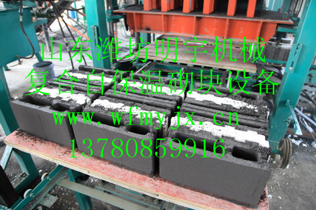 复合自保温砌块设备是我公司(13583606125)响应国家住建部实施“建筑节能结构一体化”政策而开发的新型环保、节能、绿色科技产品。该生产线具有自动化程度高,生产效率高,组合性强等特点。采用全自动配料系统,原材料计量精准,保证了产品的各项性能指标,并大幅降低企业的劳动力成本。