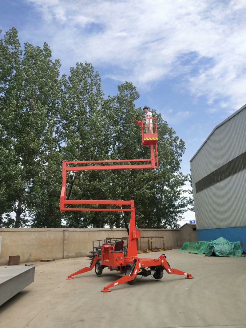 曲臂式升降机:曲臂式高空作业车能悬伸作业、跨越一定的障碍或在一处升降可进行多点作业;平台载重量大,可供两人或多人同时作业并可搭载一定的设备;曲臂车移动性好,转移场地方便;外型美观,适于室内外作业和存放。曲臂式升降作业平台适合室内外高空作业使用。具有自行走、自支腿、操作简单、使用方便、作业面大,特别是能够跨越一定障碍或者一处升降可进行多点高空作业的特点。应用于公路、码头、体育场馆、小区物业、厂矿车间等大范围作业。
