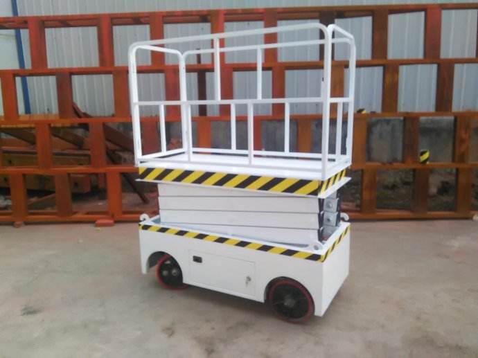 全自行升降机:①采用蓄电池作为动力源,工作时低噪音、无排放,适用于车间、仓库、酒店等室内场合。② 转向轮可90°原地转向、可以选择高低速行走,狭小空间内也可使用。③6米以下电动型号结构十分紧凑,整机宽度窄,工作栏能折叠,能通过较小的门洞并能在狭小的空间内作业。④底架两边的托盘均可旋出,便于维修检查及更换⑤