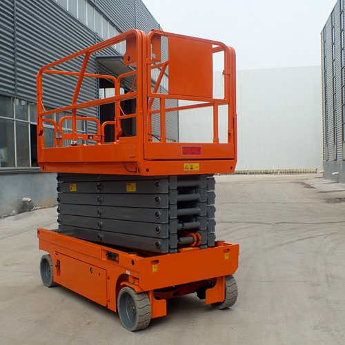全自行升降机:①采用蓄电池作为动力源,工作时低噪音、无排放,适用于车间、仓库、酒店等室内场合。② 转向轮可90°原地转向、可以选择高低速行走,狭小空间内也可使用。③6米以下电动型号结构十分紧凑,整机宽度窄,工作栏能折叠,能通过较小的门洞并能在狭小的空间内作业。④底架两边的托盘均可旋出,便于维修检查及更换⑤
