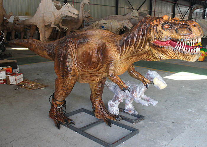 这款3米的仿真霸王龙就是仿真机械恐龙中的小型仿真恐龙模型,以霸王龙复原图为原型,结合仿真工艺和现代科技制作而成。仿真霸王龙将霸王龙进行了等比例缩小,将体长约11.5-14.7米霸王龙,缩小到长3米,同时保留了霸王龙强壮、凶猛、残暴的特性。整个仿真霸王龙不仅外形逼真,还能进行张嘴、眨眼、头左右、前肢动、身上下、摆尾和发出叫声的动作,仿佛就是电影中走出来的一样。