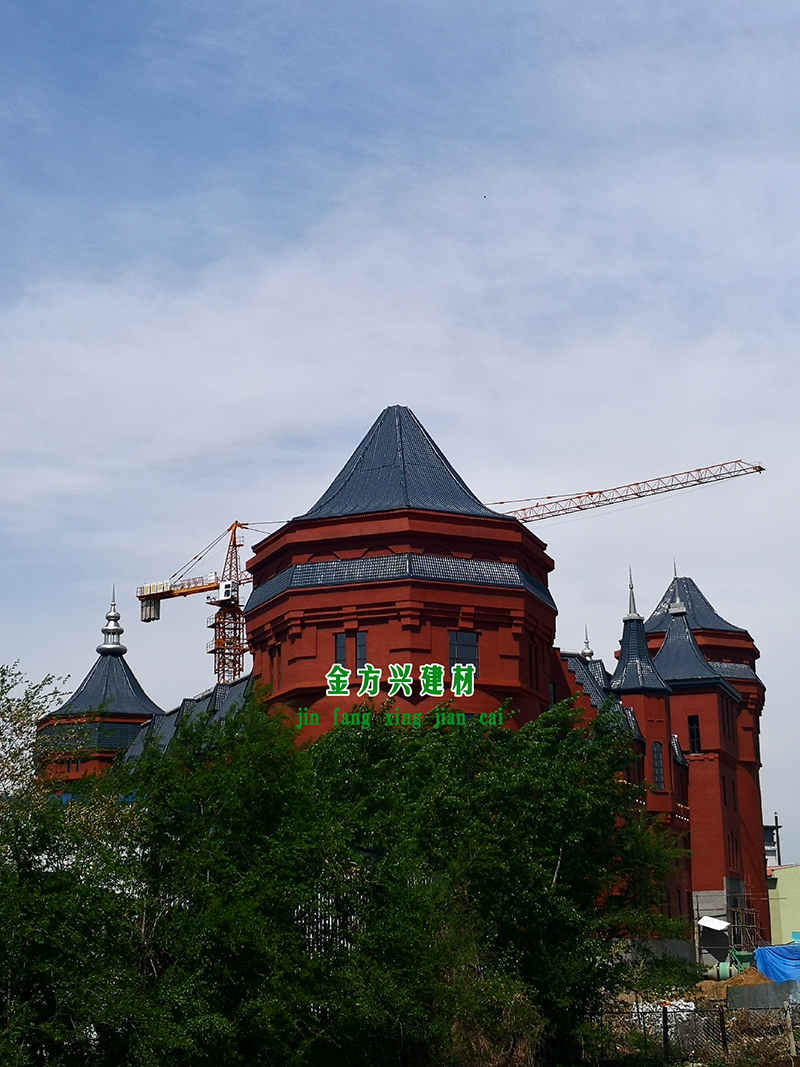 5、正、斜脊瓦安装搭接处应锯齐,正、斜脊瓦安装完毕后,再安装三通瓦。固定件为专用配件。固定时,选用电钻钻孔,孔径比钩钉丝杆大2mm。