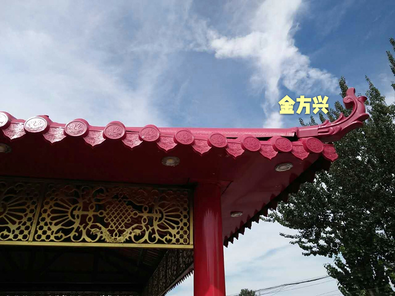 5、正、斜脊瓦安装搭接处应锯齐,正、斜脊瓦安装完毕后,再安装三通瓦。固定件为专用配件。固定时,选用电钻钻孔,孔径比钩钉丝杆大2mm。