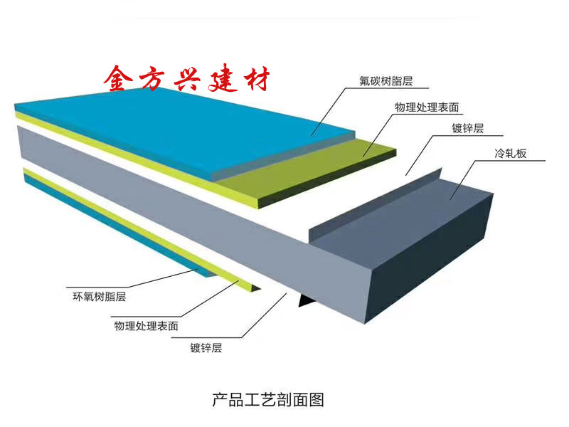 彩氟塑钢板上表面采用美国艾仕得(杜邦公司氟碳树脂,具有优异的耐候性,长期暴露在紫外线下不会出现粉化和褪色现象。
