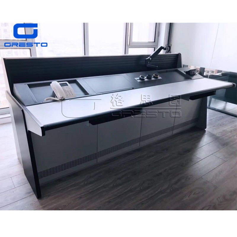 操作台由台面部分,柜体部分,键盘抽屉,柜内可调节托板,开孔面板,显示器安装背板,可配脚踏板等等组合