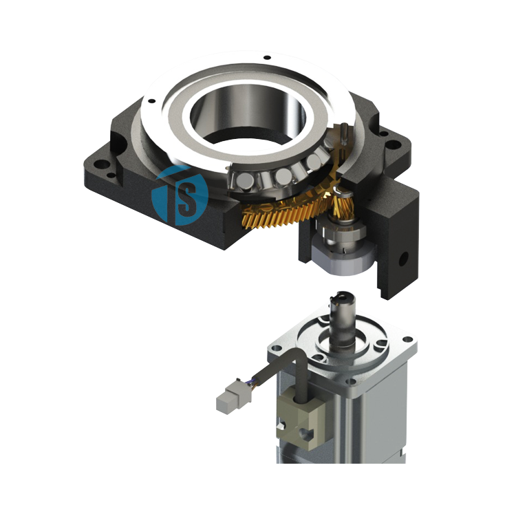 使用高刚性的交叉斜角滚子轴承与旋转平台面呈现一体化的设计,可承受大惯性的圆盘装置,整组搭配步进马达及驱动器。