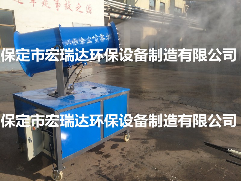 风送式喷雾机,可以通过无线遥控方式,进行水平转动和上下摆动,实现雾团对尘源体的有效覆盖,从而达到喷雾除尘的效果。