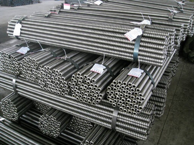 中空锚杆的锚杆体采用中空设计,杆体中孔作为钻进高压风水通道和注浆通道,与实心杆体相比,中空杆体设计可获得更好的刚度和抗剪强度。锚杆体外表面全长标准大螺距螺纹结构,螺纹结构便于锚杆的切割和接长,与光滑杆体相比增加了锚杆体与注浆材料的粘接面积从而提高了锚固力.