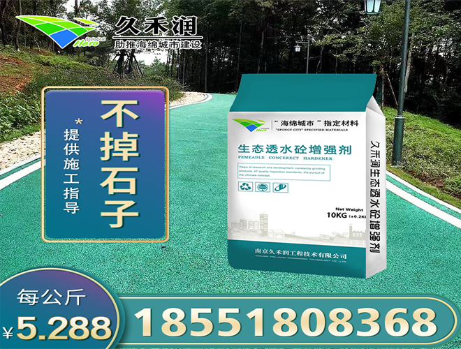 【南京久禾润工程技术有限公司 】南京久禾润工程技术有限公司,坐落于六朝古都南京,研发中心位于江苏省淮安市清河科创园内,是一家从事海绵城市核心技术产品研发、生产、销售、施工为一体的高新技术企业。我公司根据各地不同的气候特征、土壤特征,成功研发出“植生混凝土增强剂”和“无机透水混凝土增强剂”两大专利技术产品。