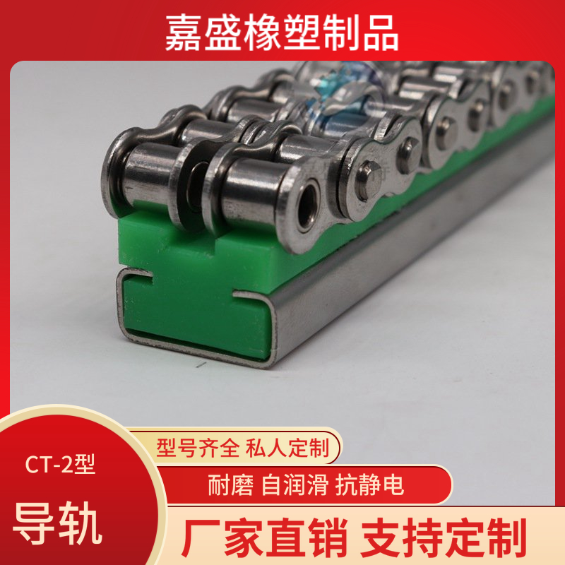 链条导轨也叫链条导向件,链条导轨是一种静压导轨。应用于食品机械、包装机械、输送机械、自动化设备、啤酒设备、饮料设备。和屈服强度。链条导轨的优点是对链条的导向、固定支撑、减少磨损、降低噪音、延长使用寿命,链条导轨采用500万超高子量聚乙烯制造,具有自润滑性、高耐磨损性、低滑动摩擦系数、强抗冲击与抗压稳定性,符合食品卫生要求、低噪音、绝缘性及热稳定性,链条导轨是所有涉及产品物料包装、罐装和输送机器制造业值得信赖的伙伴。尼龙链条导轨也叫链条导向件,是一种静压导轨,用于支撑和导向链条,减少链条磨擦,降低噪音,增强链条使用寿命。高耐磨、耐温、精密、稳固、无声、环保等高精度的链条导向。链条导轨采用500万超高分子量,高耐磨,配C型钢槽更加加固链条的导向,具有经济,无污染特性。高耐磨、耐温、精密、稳固、无声、环保等高精度的链条导向。链条导轨磨损小。摩擦阻力小。自行润滑,链条导轨具有抗冲击性。使用温度范围-200~+80℃。具有减震作用,在潮湿环境下不易受潮。链条导轨具有高的抗化学性能。有抗腐蚀性。