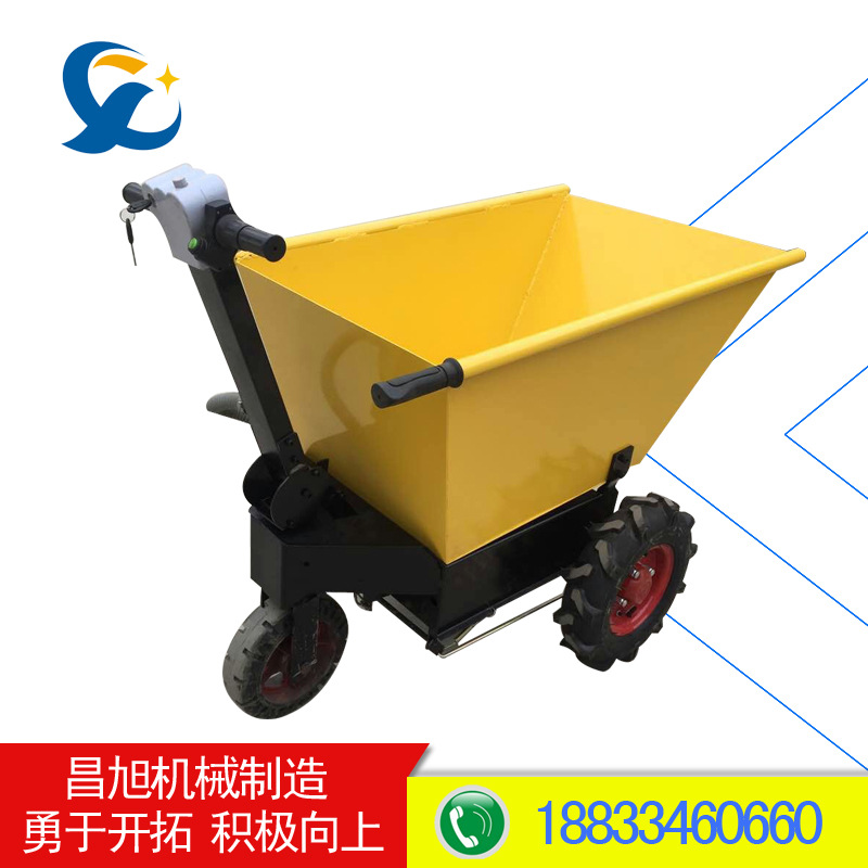 由邢台昌旭机械制造厂重磅推出新型专利电动手推工程农用两用翻斗车,相比于传统在建筑工地上使用的翻斗车,此款车改用了电力推动,一辆车配有48V的电瓶,告别了过去用人力推车,比较费力,现在人来控制方向车子自动行驶,爬坡能力强,路面不平的地方也可操作。省时又省力很适合在建筑工地,小型场地使用。
