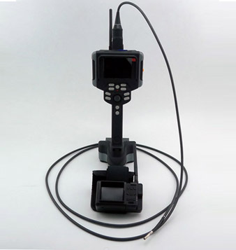高性能便携式视频电子内窥镜,整机便携式设计,轻巧,便于携带。弯曲机构采用高灵敏度蛇骨关节,在通过手柄上的操控摇杆单点触碰电控技术,控制探头360度任意旋转弯曲,角度可控制锁紧,有效的提高了探头弯曲旋转的精度;探头搭载高清图像传感器,画质清晰明亮;照明光源由大功率后置LED照明,光导纤维提供照明,亮度可以循环调节,可根据检查环境不同控制亮度明亮;3.5寸高清TFT液晶监视器实时显示;系统集成观察、电控弯曲、摄像、拍照、存储、调光等多功能于一体,具备较好的便携性,使用存储卡作为储存介质,可以通过USB或TV输出到外部设备;插入线弯曲形状可以保持不变,并且插入部分采用IP68高防油防水设计;供电采用普通可更换锂电池进行供电,可以连续使用2-3小时以上,也可以连接AC电源进行工作,保证长时间续航。