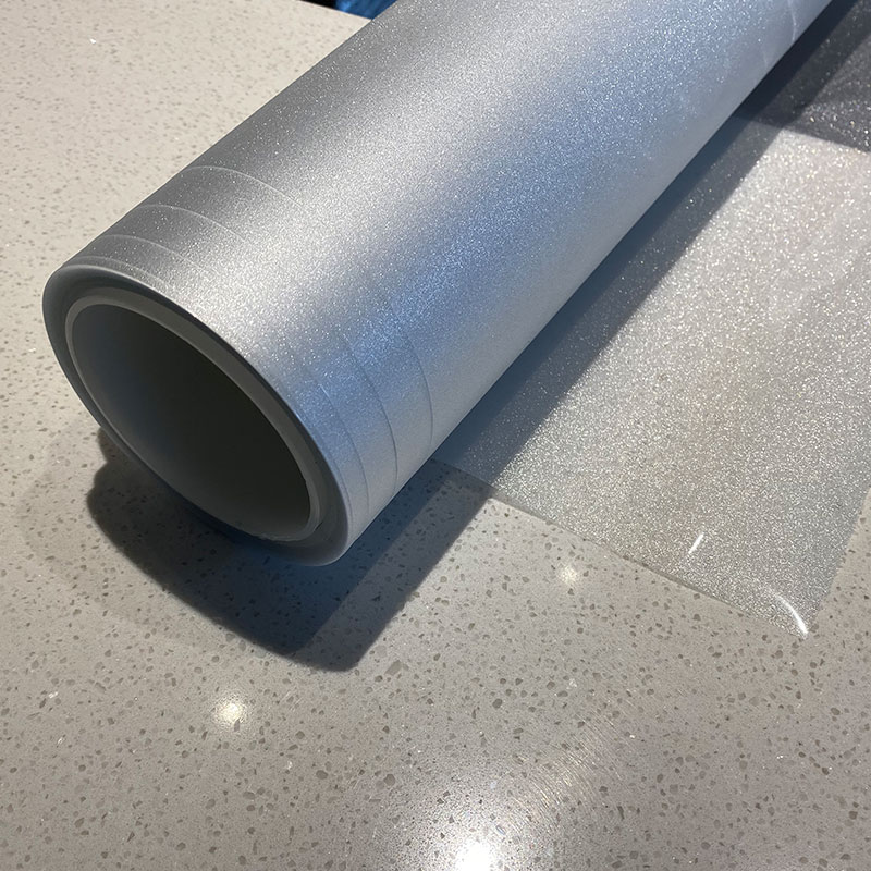 本产品保护膜有高分子散热功能,基材带有高导热性和高灵活性。表面经过了硬化处理,硬化值在4H-5H之间,耐磨性强。雾度小于0.1%,导性性和热辐射效率高。适合贴封闭漆家具漆面及大理石台面。