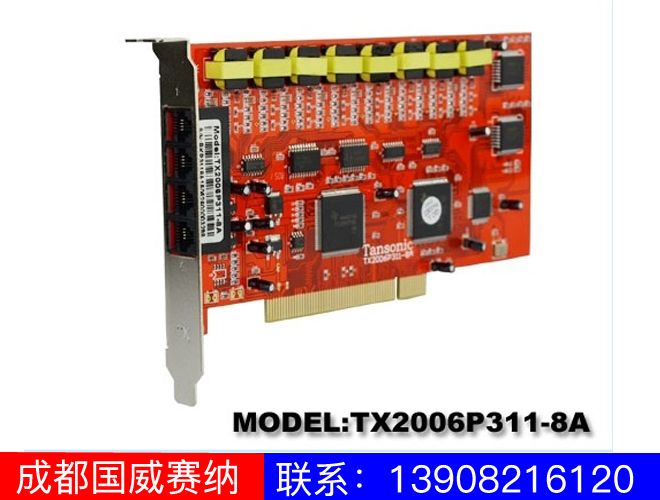 TX2006P311(8A)型号电话录音卡是8路录音系统,使用PCI接口与PC联机,具有来电记录、去电记录、来电弹屏、商务管理、实时监听等强大功能,可广泛的应用于商业电话,电力调度,热线服务电话,关键岗位电话,金融证券,汽车4S店,房地产公司,公安报警,安全部门的监听电话、航空、铁路、交通运输调度录音及各行业的生产调度录音,特别适用于需要保存完整通话录音的企业,个人使用。