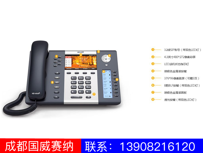 A68以“******工作效率、华丽音质体验、可视化操作、精美细节”为设计理念,是专门为管理人员和专业人士打造的一款管理级高端商务电话。它拥有4.3吋TFT彩屏,可翻页副屏集成个多功能按键,支持双千兆网口、PoE供电、EHS无线耳机接口、拨号拓展模块接口。其华丽的大功率免提音质、九方会议、更高级别的ZRTP加密方式”的特性在管理级电话里更是优势突出。