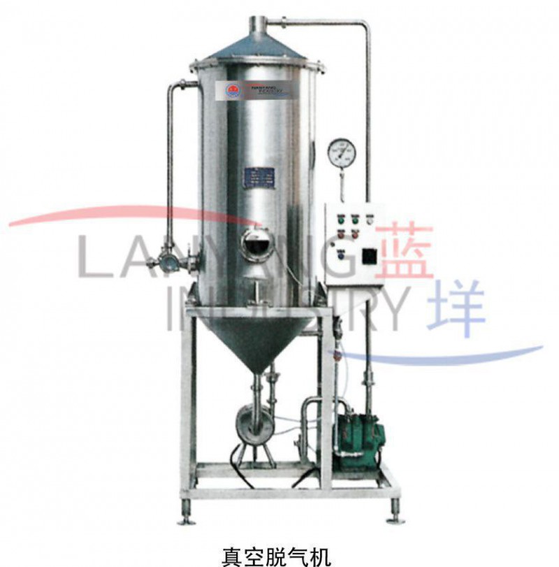 真空脱气机,用于经均质后的果汁在真空状态下进行脱气,以防止果汁氧化,延长果汁储存期,也经常用于豆奶生产中用作豆浆的脱臭、脱腥等作用。