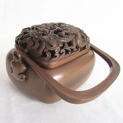 紫铜双龙浮雕手炉  规格长15厘米*宽9厘米*高14厘米  重约1.3公斤