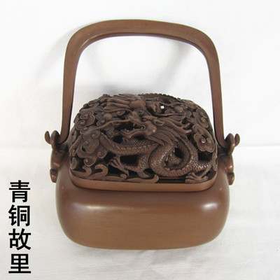 紫铜双龙浮雕手炉  规格长15厘米*宽9厘米*高14厘米  重约1.3公斤