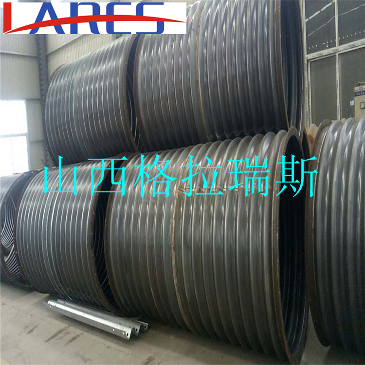 钢波纹管涵是采用波纹状管或由波纹状板通过连接、拼装形成的一种涵洞形式。波纹管由钢、铝或塑料等材料制成。用以替代圆管涵、盖板涵、拱涵和小桥的优质公路建材。对公路涵洞来说,涵洞的不均匀沉降是其破坏的主要型式。钢波纹涵管有圆形、椭圆形、半圆形等,进出口也可按照边坡比例做成斜口,加工波纹管管径范围Φ0.5m~Φ8m,管壁厚度为3mm~7mm,能够满足填土0.5m~40m厚的需要。钢波纹管涵具有工期短、重量轻、安装方便、耐久性好、工程造价低、抗变形能力强、减少通车后养护成本等特点,从材料与结构和功能的本质关系上分析,采用柔性、高强度的钢波纹管涵洞,不仅具有适应地基与基础变形的能力,可以解决因地基基础不均匀沉降导致的涵洞破坏问题,而且钢波纹管涵洞由于轴向波纹的存在使其具有优良的受力特征,轴向和径向同时分布因荷 载引起的应力应变,可以更大程度上分散荷载的应力集中,更好地发挥钢结构的优势。尤其在高寒冻土、软土、膨胀土、湿陷性黄土等地带,具有明显的经济效益