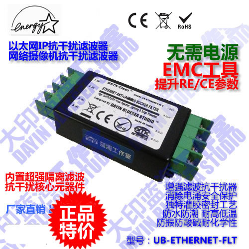 工业级以太网EMC辐射降噪器/以太网RECE广谱干扰抑制器/网络端口电涌抑制器